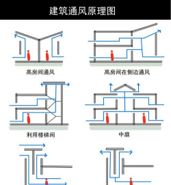 自然通风:利用风压、热压等自然因素进行空气流动。