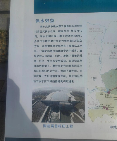 中线工程:从湖北丹江口水库引水,经河南、河北至北京、天津,2014年正式通水。