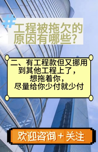 工程项目通常需要较长时间才能完成,从开工到验收、结算、付款往往需要几个月甚至几年。这期间如果业主(甲方)资金链紧张,就容易出现拖延付款的情况。