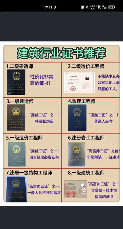 “工程”是一个非常广泛的领域,涵盖了土木工程、机械工程、电气工程、建筑、化工、环境工程等多个专业方向。根据不同的工程专业和职业发展方向,可以考取的证书也有所不同。以下是一些常见的工程类证书,供你参考:
