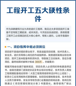 工程开工需要满足一系列条件,这些条件通常包括法律、行政许可、技术准备和资金保障等方面。不同国家和地区可能有不同的规定,但总体上大致分为以下几个方面: