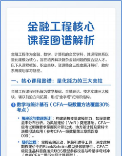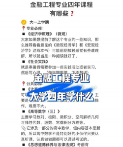 金融工程(Financial Engineering)是一门结合金融学、数学、统计学和计算机科学的交叉学科,主要研究如何运用数学模型和工程技术来解决金融问题,如资产定价、风险管理、投资组合优化等。不同高校的课程设置可能略有差异,但一般来说,金融工程专业会包含以下几个方面的课程: