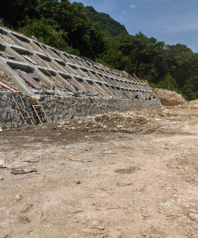 网格护坡:采用钢筋混凝土网格结构,固定土壤。