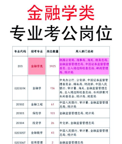 这些部门对金融专业人才需求较多,具体岗位包括金融监管、风险控制、政策研究等。