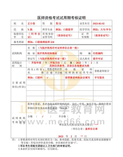 医师资格考试试用期考核证明