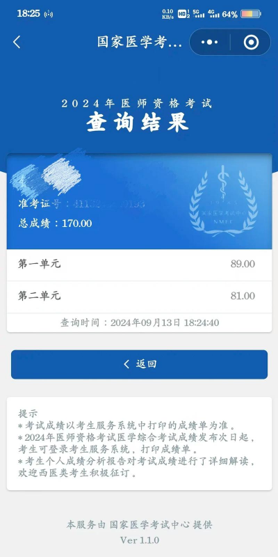 临床助理医师资格考试的总分为 300分,其中180分为合格分数线。考试分为两个单元,每个单元各150分。