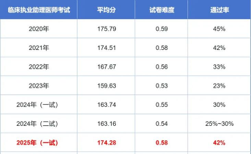 这些数据表明,尽管存在波动,但整体通过率仍维持在20%至30%之间。此外,临床执业医师的通过率在2024年显著提高,达到了61%-80%。