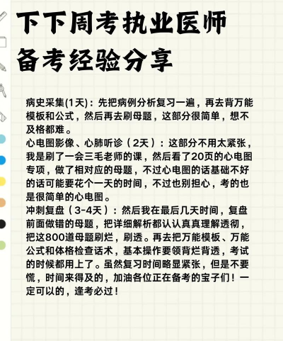 希望这些经验和建议能帮助你顺利通过医师资格考试。祝你考试顺利!