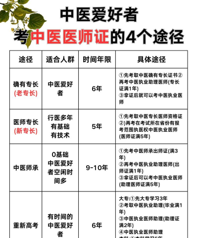 参加中医师承或确有专长考试:对于想要从事中医行业的人员,可以选择参加中医师承或确有专长考试。