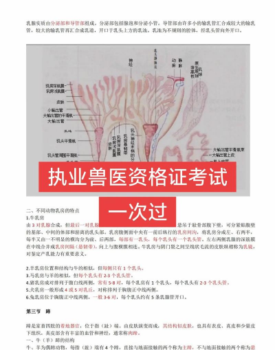兽医职业考试的内容主要分为 基础科目、临床科目、预防科目和综合应用科目四个部分,总分为400分。以下是各科目具体考试内容:
