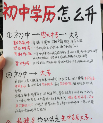 对于只有初中文化水平的人群,想要提升自己的学历,可以考虑以下几种途径: