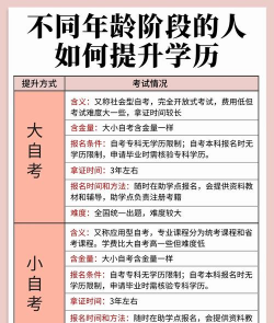 特点:自学考试没有学历和年龄的限制,可以通过自学参加国家考试,获得大专或本科学历。但自考难度较大,需要较强的学习能力和自律。